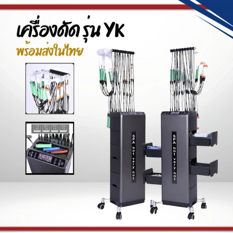 รุ่น: YK 24V ลิ้นชักข้าง ออกแบบมาเพื่อการทำงานจริง รองรับการทำงานแบบต่อเนื่อง ช่วยประหยัดเวลา เพราะสามารถ รับงานดัดได้ 2 หัวพร้อมกัน และยัง แยกการควบคุมความร้อนเป็น 2 ฝั่ง เพื่อความยืดหยุ่นกับสภาพเส้นผมที่ต่างกันในลูกค้าแต่ละราย