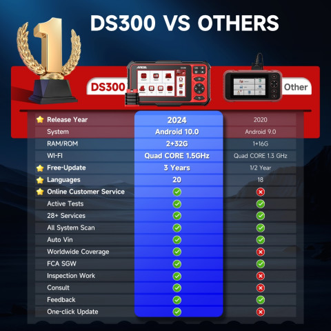 Ancel DS300 OBD2 เครื่องสแกนรถยนต์แบบสองทิศทาง (Bi-Directional) วิเคราะห์ระบบทั้งหมด เครื่องมือวิเคราะห์รถระดับมืออาชีพสำหรับอู่ซ่อมและช่างเทคนิค ที่ต้องการความเร็ว ความแม่นยำ และความครอบคลุมในการตรวจเช็คปัญหา—ตั้งแต่อ่านโค้ด/ลบโค้ด ไปจนถึงการทดสอบแอคทีฟและฟังก์ชันรีเซ็ตงานบำรุงรักษามากกว่า 30 รายการ พร้อมระบบ Android 10 และรองรับรถยนต์กว่า 10,000 รุ่น จาก 90+ แบรนด์ ทั่วโลก