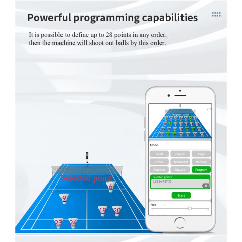คุมการซ้อมได้ด้วย APP ตั้งค่ารวดเร็ว เลือกรูปแบบการฝึกและจำนวนลูก/เวลาในแต่ละเซสชันได้ตามต้องการ