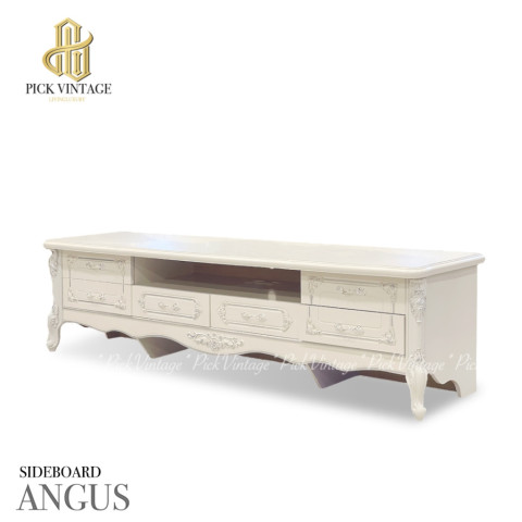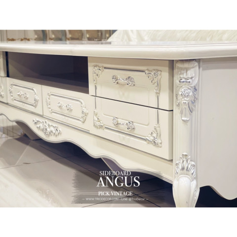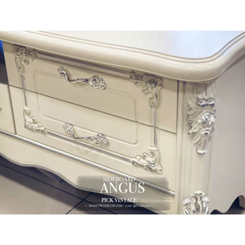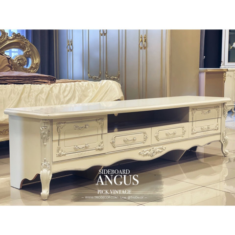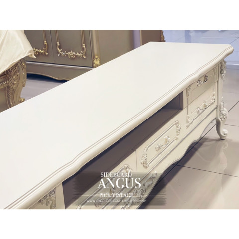 ANGUS SIDEBOARD ตู้วางทีวีวินเทจ 2ม. รุ่น แองกัส ราคา 11,979.00 บาท เติมเสน่ห์ให้มุมทีวีดูหรูละมุนแบบยุโรปคลาสสิค ด้วยโทน Soft White สไตล์หลุยส์เจ้าหญิง โดดเด่นด้วยงานแกะลายอ่อนช้อย ให้บรรยากาศบ้านดูเรียบร้อย สบายตา และสวยแบบข้ามกาลเวลา เหมาะทั้งห้องนั่งเล่น ห้องรับแขก หรือห้องนอน เข้ากับบ้านได้ทุกสไตล์
