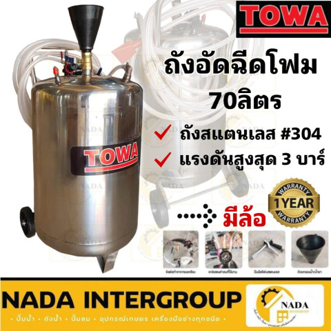 TOWA ถังพ่นโฟมสแตนเลส 70 ลิตร (70L) ตัวช่วยงานทำความสะอาดที่ให้โฟมหนานุ่ม กระจายสม่ำเสมอ เหมาะสำหรับงานคาร์แคร์และสถานที่ที่ต้องการความสะอาดมาตรฐานสูง เช่น โรงพยาบาล โรงแรม และร้านอาหาร ด้วยตัวถังสแตนเลสคุณภาพ ทนทาน ไม่เป็นสนิม ใช้งานได้ยาวนาน คุ้มค่ากับการลงทุน