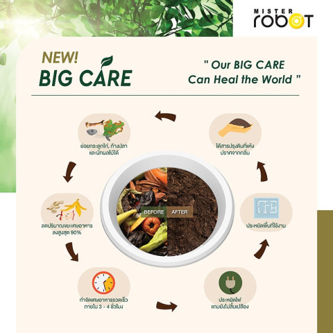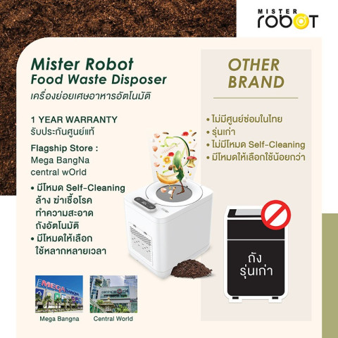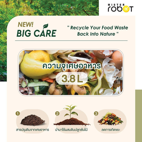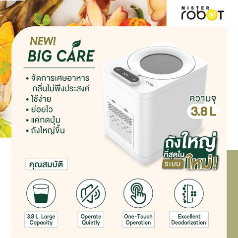 Mister Robot เครื่องย่อยเศษอาหารอัตโนมัติ Food Waste Disposer รุ่น BIG CARE (3.8L) ดีไซน์ใหม่ใหญ่กว่าเดิม ปี 2025