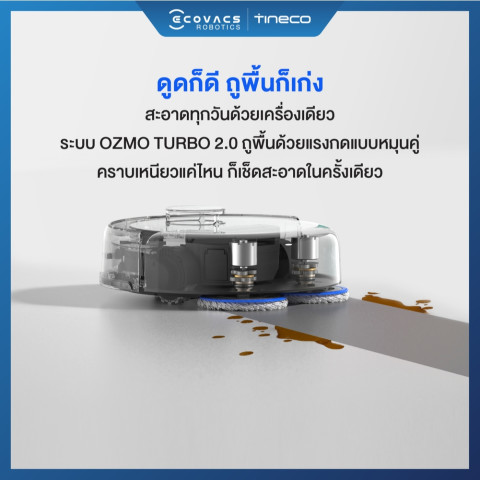 ควบคุมผ่าน ECOVACS HOME APP ปรับแรงดูด ปริมาณน้ำ โหมดทำความสะอาด และการดูด-ถูได้ตามต้องการ