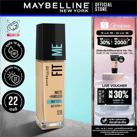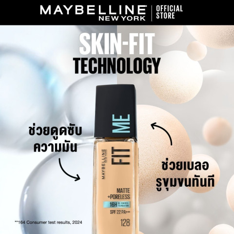 เผยผิวสวยแมท เรียบเนียน เป๊ะตลอดวันด้วย MAYBELLINE FIT ME MATTE & PORELESS LIQUID FOUNDATION รองพื้นยอดนิยมจากเมย์เบลลีน นิวยอร์ก ที่ออกแบบมาเพื่อผิวธรรมดาถึงผิวมันของสาวเอเชียโดยเฉพาะ ด้วยเนื้อรองพื้นบางเบา เกลี่ยง่าย แต่ให้การปกปิดอย่างเป็นธรรมชาติ ช่วยควบคุมความมันยาวนานสูงสุดถึง 16 ชั่วโมง* มอบผิวแมทสวย ไม่ดรอประหว่างวัน พร้อมช่วยอำพรางรูขุมขนให้ดูกระชับ เรียบเนียน และปกป้องผิวจากแสงแดดด้วย SPF22 ในราคาเบาสบายเพียง 347.13 บาท