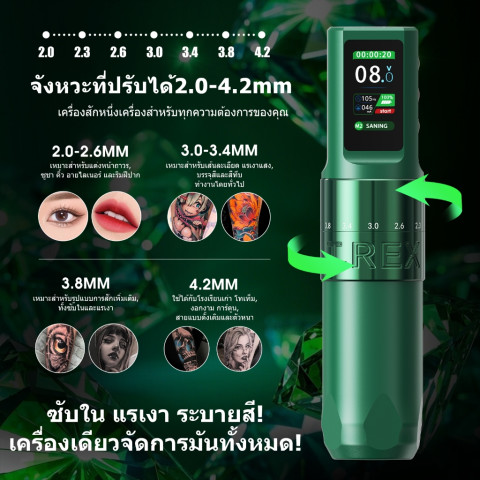 ยกระดับงานสักของคุณสู่ปี 2025 ด้วย T-REX 2025 ใหม่ Diamond เครื่องสักไร้สายปากกาหมุนได้ 7 จังหวะปรับได้ มาพร้อมโหมดคู่ Dot Work และหน้าจอ OLED แสดงผลชัดเจน ใช้งานต่อเนื่องด้วยแบตเตอรี่ในตัวขนาด 1600mAh เหมาะทั้งสำหรับศิลปินสักมืออาชีพและผู้ที่ต้องการพัฒนาฝีมืออย่างจริงจัง
