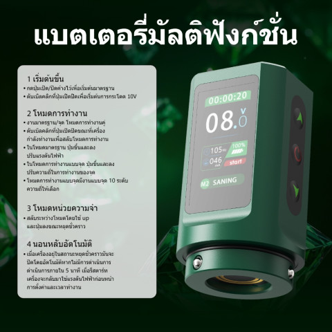 ดีไซน์แบบปากกาไร้สาย ช่วยให้การควบคุมง่าย นุ่มมือ และแม่นยำ ให้สมดุลจุดศูนย์ถ่วงที่ดี ลดอาการล้าของข้อมือแม้ใช้งานต่อเนื่องหลายชั่วโมง รองรับเข็มตลับสักแบรนด์ใหญ่ ๆ ได้หลากหลาย พร้อมระบบ 7 จังหวะปรับได้ ช่วยให้คุณปรับสไตล์งานได้ตามต้องการไม่ว่าจะเป็นเส้นคม งานลงสี หรืองาน Dot Work รายละเอียดสูง