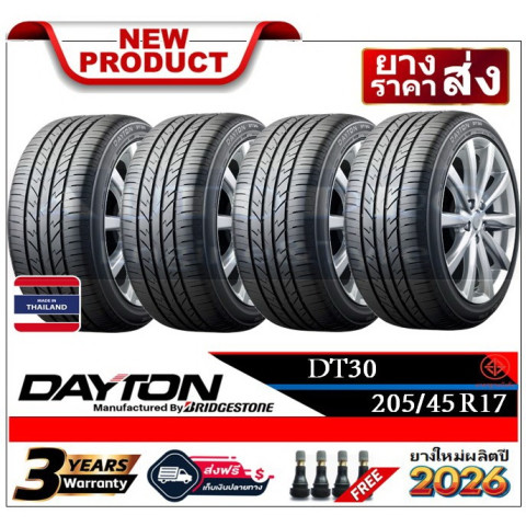 ชุดนี้เป็น ชุดยางใหม่ 4 เส้น ขนาด 205/45R17 รุ่น DAYTON DT30 ปี 2026 เหมาะสำหรับผู้ใช้รถเก๋งที่ต้องการทั้งสมรรถนะและความคุ้มค่าในราคาจับต้องได้ พร้อมของแถมและการรับประกันจากโรงงานโดยตรง