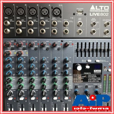 ALTO LIVE-802 MIXER มิกเซอร์ระดับโปรสำหรับงานแสดงสด สตูดิโอ และงานอีเวนต์ที่ต้องการคุณภาพเสียงคมชัด ควบคุมง่าย ตัวเครื่องแบบ 8-Channel/2-Bus พร้อมปรีไมค์ DNA™ ให้เสียงร้องและเครื่องดนตรีใส รายละเอียดดี เหมาะทั้งมือใหม่ที่อยากได้มิกเซอร์ใช้งานสนุก และมืออาชีพที่ต้องการความเสถียรในงานจริง ในราคา 9,990.00 บาท