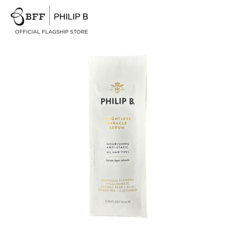สัมผัสประสบการณ์ผมสวยเงางามเบาสบายด้วย [แถมฟรี] Philip B - Weightless Miracle Serum 10 ml เซรั่มบำรุงเส้นผมสูตรน้ำหนักเบา ที่ช่วยฟื้นบำรุงผมแห้งเสีย ชี้ฟู และไร้น้ำหนัก ให้กลับมานุ่มลื่น จัดทรงง่าย ดูมีชีวิตชีวาในทุกๆ วัน เหมาะสำหรับทุกสภาพเส้นผม โดยเฉพาะผู้ที่ต้องการการบำรุงแบบล้ำลึกแต่ไม่อยากให้ผมรู้สึกเหนียวเหนอะหนะหรือหนักศีรษะ