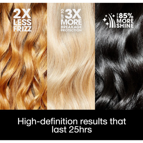 ผมเงางามขึ้นถึง 85% ลดผมชี้ฟูชัดเจน ให้ผมเงา ดูสุขภาพดีขึ้น จัดทรงอยู่ทรงยาวนาน เรียบลื่น แลดูเป็นมืออาชีพเหมือนออกจากร้านทำผม