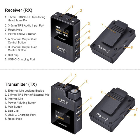 ชุดไมค์ไร้สาย COMICA BOOMX-D D2 (ตัวส่ง/ตัวรับ)