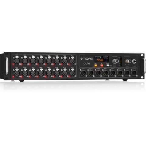MIDAS DL16 Stage Box สเตจบ็อก Preamp 16 Mic 8 XLR Output คือโซลูชันขยายอินพุตและเอาต์พุตบนเวทีที่ออกแบบมาเพื่องาน Live Sound และงานระบบเสียงระดับมืออาชีพ ช่วยย้ายจุดรับสัญญาณไปอยู่ใกล้แหล่งเสียง ลดสัญญาณรบกวน พร้อมพรีแอมป์คุณภาพแบบ MIDAS ที่ขึ้นชื่อเรื่องความใส เคลียร์ และไดนามิกที่ยอดเยี่ยม