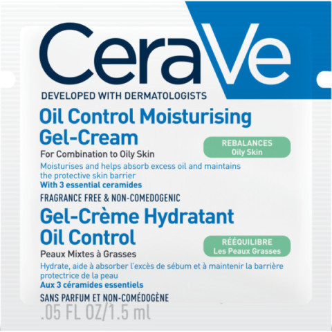 ของแถม CERAVE Oil Control Gel Cream 1.5ml มอยส์เจอไรเซอร์เนื้อเจลครีมที่ออกแบบมาเพื่อผิวมัน–ผิวผสม ช่วยเติมความชุ่มชื้นแบบบางเบา พร้อมดูแลความมันส่วนเกิน ให้ผิวรู้สึกสบาย ไม่เหนอะหนะ เหมาะสำหรับทดลองใช้หรือพกพาระหว่างวัน
