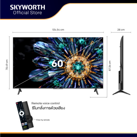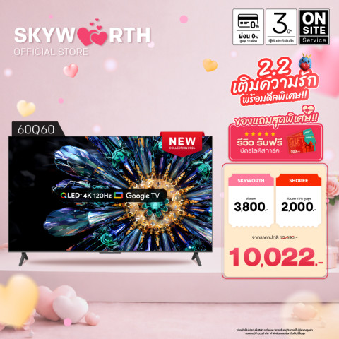 ใหม่ล่าสุด SKYWORTH QLED+ Smart Google TV 60" รุ่น 60Q60 ทีวีจอใหญ่คมชัดระดับ 4K ที่มาพร้อมสีสันสดลึกแบบ QLED+ และรองรับ HDR10 ให้ภาพสวยมีมิติ เหมาะทั้งดูหนัง ดูซีรีส์ และใช้งานแอพสตรีมมิ่งแบบครบเครื่องบนระบบ Google TV (Android 14) ใช้งานง่าย โหลดแอพได้ผ่าน Play Store พร้อม Wi‑Fi และ Bluetooth ครบจบในเครื่องเดียว ในราคา 15,636.60 บาท