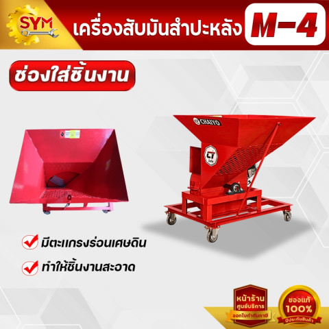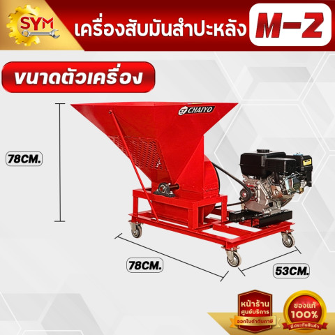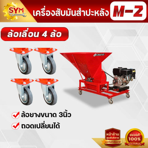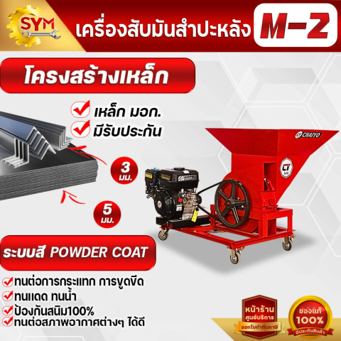 เครื่องสับมันสำปะหลัง รุ่น M2 กำลังผลิตสูง 1.5–2 ตัน/ชั่วโมง เหมาะสำหรับเกษตรกรและผู้ประกอบการที่ต้องการสับมันให้ได้ชิ้นสม่ำเสมอ ช่วยประหยัดเวลาและแรงงาน ใช้งานได้ยืดหยุ่นทั้งกับมอเตอร์ เครื่องยนต์เบนซิน หรือแบบต่อพ่วงรถไถนา พร้อมระบบกรองเศษดินก่อนสับ ลดสิ่งปนเปื้อนและช่วยถนอมใบมีดให้ใช้งานได้นานขึ้น