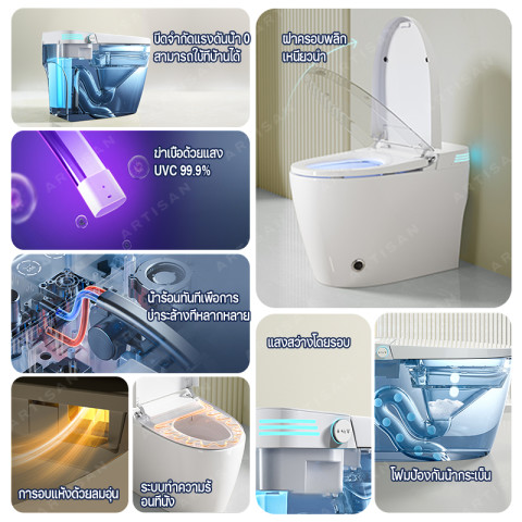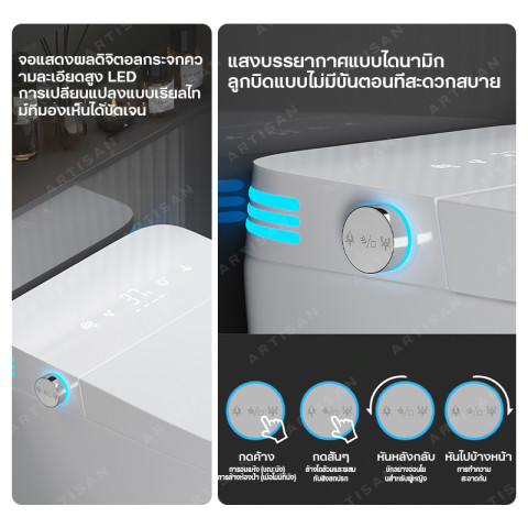 ยกระดับห้องน้ำให้ “สะอาด สบาย ฉลาด” ในเครื่องเดียวด้วยโถสุขภัณฑ์สมาร์ทแบบ All-in-one ดีไซน์เซรามิกสีขาวเรียบหรู มาพร้อมระบบเซ็นเซอร์อัตโนมัติ หัวฉีดล้างปรับอุณหภูมิได้ และลมอุ่นเป่าแห้ง ช่วยให้ทุกครั้งที่ใช้งานสะดวกขึ้นอย่างเห็นได้ชัด เหมาะสำหรับบ้าน คอนโด หรือผู้ที่ต้องการความสะอาดเป็นพิเศษ
