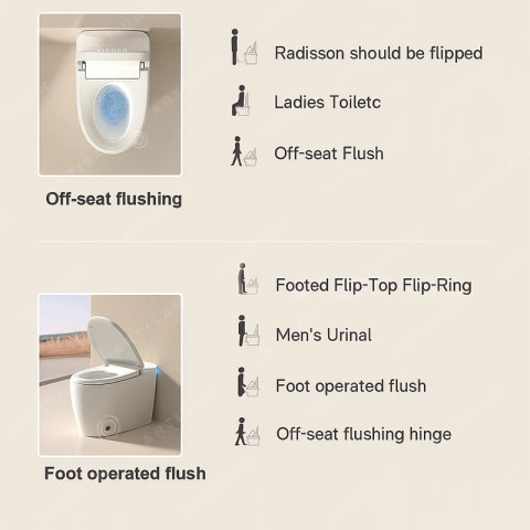 ล้างน้ำอัตโนมัติ + ลุกห่างฝากดน้ำออโต้ + เซ็นเซอร์ขากดน้ำ