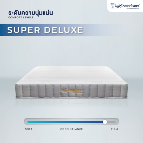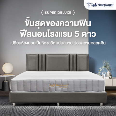 ให้ทุกคืนของคุณเต็มไปด้วยความผ่อนคลายและการพักผ่อนที่มีคุณภาพ ด้วย Lady Americana รุ่น Super Deluxe ที่นอนยางพารา หนา 10 นิ้ว พร้อมชุดเครื่องนอนครบชุดและการรับประกันยาวนาน เลือกลงทุนกับการนอนที่ดี เพื่อสุขภาพและคุณภาพชีวิตที่ดีกว่าในทุกวัน