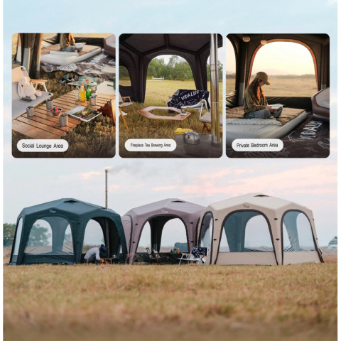 ด้วยโครงสร้างเสาลม (Air Dome) คุณสามารถกางเต็นท์ได้ภายในไม่ถึง 10 นาที ลดขั้นตอนยุ่งยากจากเสาเต็นท์แบบเดิม ขนาดภายในกว้างขวาง โปร่ง โล่ง มีหน้าต่างรอบทิศทาง ช่วยระบายอากาศดีเยี่ยม พร้อมวัสดุผ้าแบบพรีเมียมที่ให้ทั้งความทนทานและความเป็นส่วนตัว เพิ่มความพิเศษให้ทุกคืนในแคมป์ของคุณ