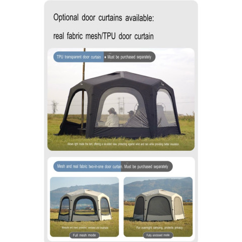 ม่าน TPU และมุ้งเสริมเป็นอุปกรณ์เสริม ต้องสั่งเพิ่ม ไม่ได้รวมอยู่ในชุดเต็นท์หลัก
