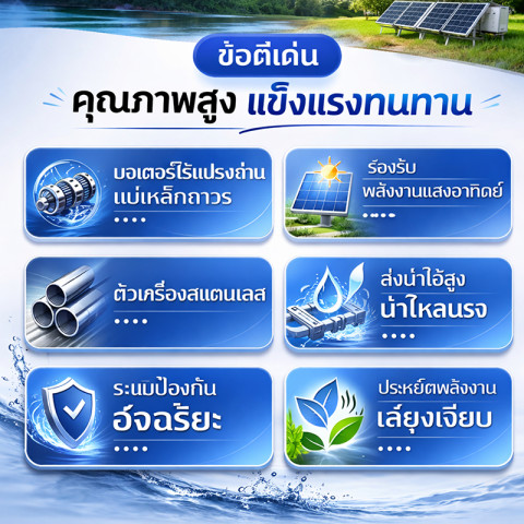 เหมาะกับระบบโซล่าเซลล์นอกพื้นที่ ไร่นา ฟาร์ม หรือบ้านพักที่ต้องการน้ำสะอาดอย่างต่อเนื่อง