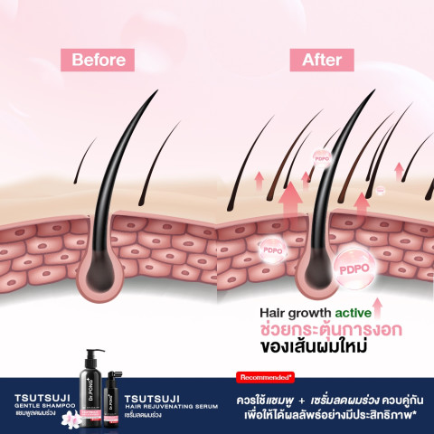 Dr.PONG TSUTSUJI HAIR REJUVENATING SERUM เซรั่มลดผมร่วงสูตรเข้มข้นที่พัฒนาเพื่อให้รากผมกลับมาแข็งแรง พร้อมฟื้นบำรุงหนังศีรษะแบบไม่ระคายเคือง ด้วยสารสกัดทรงพลังจากดอกทสึทสึจิและ PDPO ที่ให้ประสิทธิภาพเหนือกว่า Minoxidil พร้อมลดผลข้างเคียง บวกคอมเพล็กซ์จาก Coffea Arabica และ Creatine ให้เส้นผมใหม่งอกหนาแน่น ผสานชะเอมเทศและ Glycerin เติมความชุ่มชื้น ปลอบประโลม ลดความแห้งลอก หนังศีรษะจึงพร้อมรับวงจรผมใหม่อย่างเต็มที่ ราคา 674.50 บาท ปริมาณ 30 มล. ใช้ได้ 1-2 เดือน (ประมาณ 120 สเปรย์) ผ่านการขึ้นทะเบียน อย. 13-1-6400022365 และปลอดสารระคายเคือง เช่น ซิลิโคน น้ำหอม สี พาราเบน สเตียรอยด์ แม้จะมี Alcohol denat แต่ถูกคุมระดับเพื่อช่วยละลาย PDPO โดยไม่ก่อการแพ้ จึงเหมาะทั้งชายและหญิงที่ต้องการแก้ปัญหาผมบางแบบเห็นภาพจริง ไม่ขายฝัน