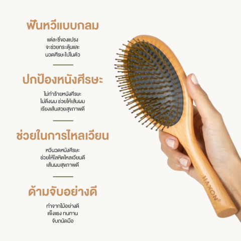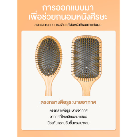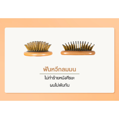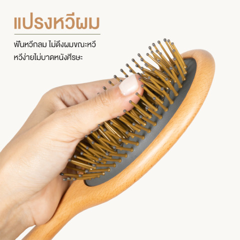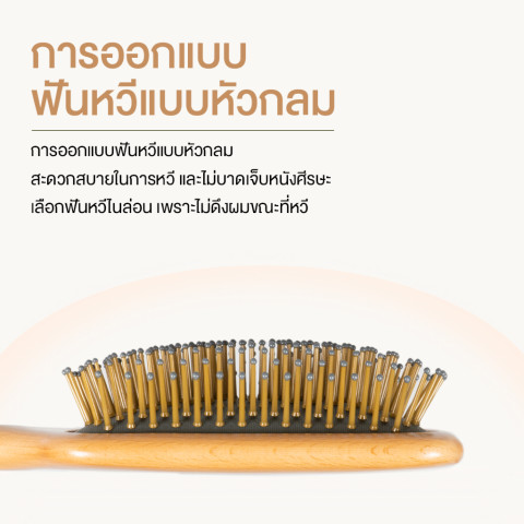 วัสดุ: ไม้ธรรมชาติคุณภาพดี พร้อมฐานแปรงยืดหยุ่น รองรับแรงกดขณะหวี