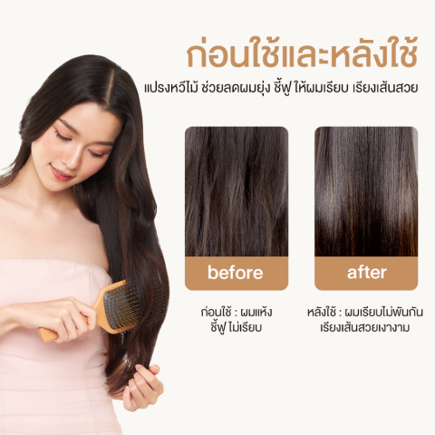 หวีไม้เพื่อแปรงผมให้ผมนุ่มลื่น จัดทรงง่าย ลดโอกาสการหลุดร่วงของเส้นผม