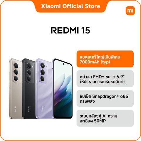 REDMI 15 8+256 คือสมาร์ทโฟนที่รวมทุกความต้องการไว้ในเครื่องเดียว ทั้งแรง อึด จอใหญ่ และคุ้มค่า เหมาะอย่างยิ่งสำหรับผู้ที่มองหามือถือที่ใช้งานได้ครบทุกด้านในราคาประมาณ 4,999 บาท