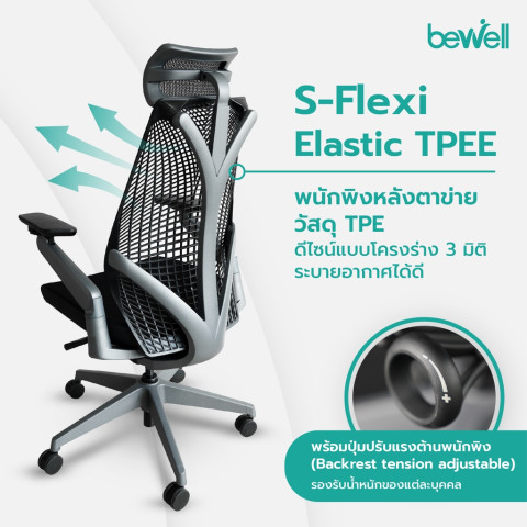 พนักพิงหลัง S-Flexi-Elastic TPEE ระบายอากาศดีเยี่ยม