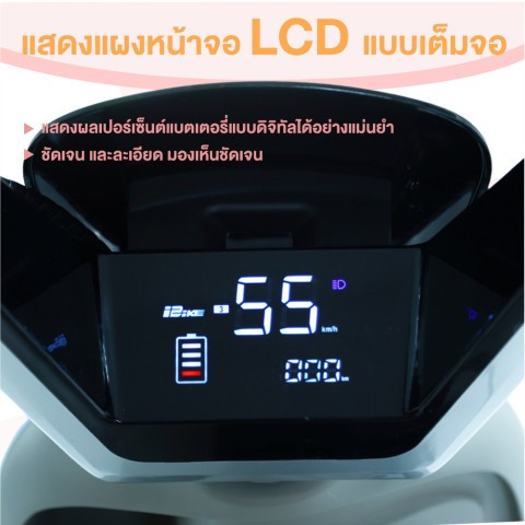 ใช้งานสะดวกด้วยหน้าจอแสดงผลแบบ LCD เต็มจอ แสดงสถานะแบตเตอรี่ ความเร็ว และข้อมูลสำคัญต่าง ๆ ในมุมมองที่ชัดเจน ปรับความเร็วได้ 3 ระดับตามการใช้งาน ทั้งโหมดประหยัด โหมดมาตรฐาน และโหมดเร่งเต็มกำลัง มาพร้อมรีโมทอัจฉริยะและระบบรีโมทล็อครถกันขโมย เพิ่มความสบายใจให้คุณทุกครั้งที่จอด