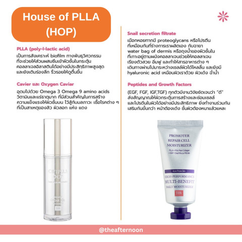 คาเวียร์อุดมไปด้วย Omega 3, Omega 9, กรดอะมิโน วิตามิน และแร่ธาตุจำนวนมาก ช่วยเสริมความแข็งแรงให้ผิวชั้นบน ทำหน้าที่เหมือน “กำแพงผิว” ปกป้องจากมลภาวะ เชื้อโรค และสิ่งระคายเคืองที่เป็นต้นเหตุของสิว ผิวลอก แดง แห้ง ขณะเดียวกันออกซิเจนจะช่วยกระตุ้นการไหลเวียนและการเผาผลาญของเซลล์ผิว ทำให้ผิวทำงานได้เต็มประสิทธิภาพPLLA (Poly-L-Lactic Acid)