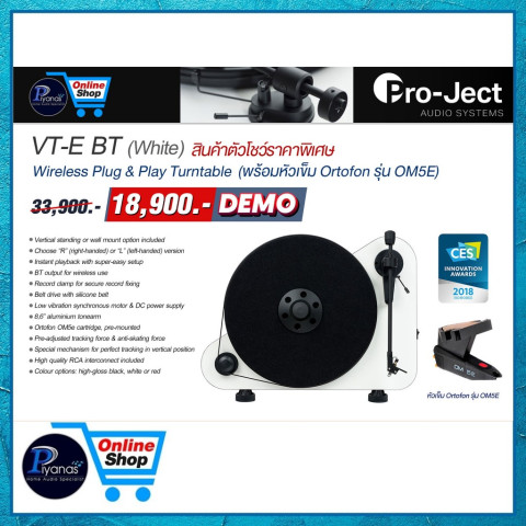 จุดเด่นของ VT-E BT คือการออกแบบให้ตั้งได้ทั้งแบบ ตั้งบนโต๊ะ หรือ ติดผนัง พร้อมชุดอุปกรณ์ติดตั้งในกล่อง และยังมี ภาค Phono Preamp กับ BT Transmitter ในตัว ช่วยให้เชื่อมต่อแบบไร้สายไปยังลำโพงหรือหูฟัง Bluetooth ได้ง่ายมาก อีกทั้งยังสามารถใช้งาน BT และ RCA พร้อมกันได้ ตอบโจทย์ทั้งการฟังแบบส่วนตัวและต่อเข้าระบบเครื่องเสียงบ้าน