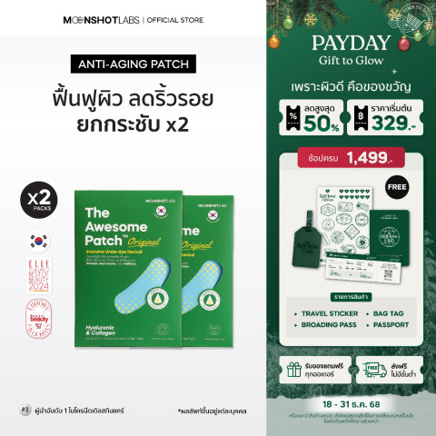 [2 Packs] The Awesome Patch แผ่นแปะไมโครนีดเดิล 1,800 เข็ม นวัตกรรมดูแลผิวแบบไม่ต้องฉีด ช่วยส่งผ่านสารบำรุงลึกกว่าครีมทั่วไป เพื่อกู้ผิวบริเวณที่มีริ้วรอยและจุดแสดงอายุแบบเร่งด่วน ไม่ว่าจะเป็น ใต้ตา ร่องแก้ม หน้าผาก และหางตา ตื่นมาพร้อมผิวที่ดูฟู กระชับ และสดใสขึ้นอย่างเป็นธรรมชาติ