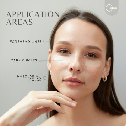 วางบนบริเวณที่ต้องการ เช่น ใต้ตา หน้าผาก ร่องแก้ม หรือหางตา