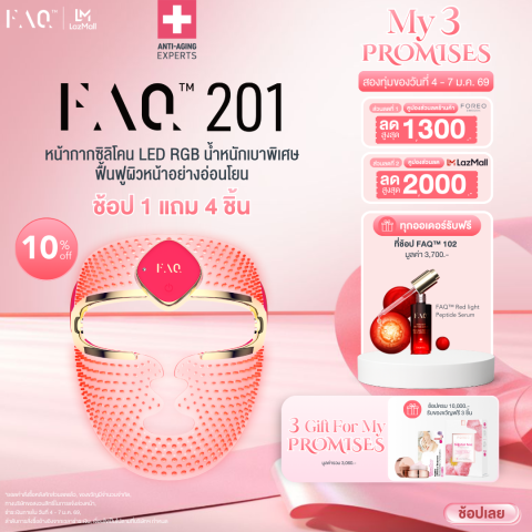 FAQ 201 หน้ากากซิลิโคน LED RGB ไอเท็มดูแลผิวที่ให้คุณ “ทำสปาหน้า” ได้ทุกวันแบบมือโปร ช่วยให้ผิวดูเรียบเนียน กระจ่างใส และดูอ่อนเยาว์อย่างเป็นธรรมชาติในระยะยาว