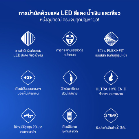 เทคโนโลยี LED RGB ช่วยดูแลผิวแบบครอบคลุม ทั้งเรื่องความกระจ่างใส ความเรียบเนียน และความยืดหยุ่น