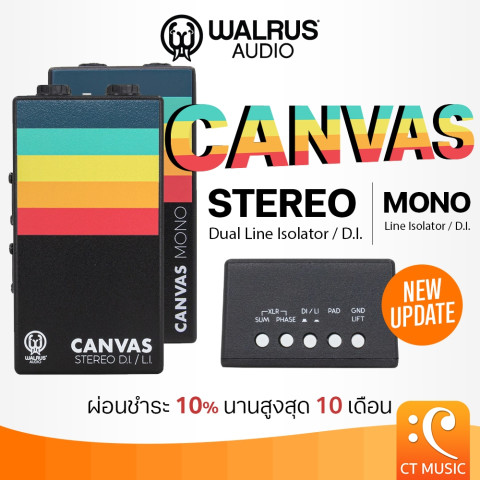 WALRUS AUDIO Canvas Line Isolator D.I. / Canvas Stereo Dual Line Isolator D.I. ดีไอ บ๊อกซ์/ไลน์ไอโซเลเตอร์คุณภาพระดับโปรสำหรับสายเล่นสดและบันทึกเสียง ช่วยแปลงสัญญาณ ¼” Unbalanced ให้เป็น XLR Balanced เพื่อส่งสัญญาณเข้า มิกเซอร์/ออดิโออินเทอร์เฟซ/Front-of-House ได้อย่างสะอาด คมชัด ลดสัญญาณรบกวน ฮัม และปัญหากราวด์ลูป พร้อมทรานส์ฟอร์เมอร์แยกวงจร ให้โทนเสียงเป็นธรรมชาติและเฮดรูมดี เหมาะทั้งกีตาร์ อคูสติก เบส ซินธ์ หรือ DSP/amp-in-a-box (เช่น rig แบบดิจิทัล)