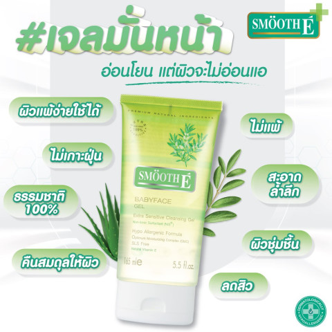 [แพ็ค 2] Smooth E Babyface Gel 5.5 Oz. เจลล้างหน้าสูตรไม่มีฟอง 100% แบบ Non-Ionic (ไม่มีประจุไฟฟ้า) ช่วยทำความสะอาดอย่างอ่อนโยนโดยไม่ทิ้งสารตกค้างที่อาจเป็นหนึ่งในสาเหตุของการอุดตัน สิว และริ้วรอย เหมาะมากสำหรับผู้ที่มี ผิวบอบบางแพ้ง่าย หรือผิวที่มีแนวโน้มเป็นสิวอุดตันง่าย ใช้แล้วผิวไม่แห้งตึง พร้อมเติมความชุ่มชื้นให้ผิวดูนุ่มสบายทุกครั้งหลังล้างหน้า