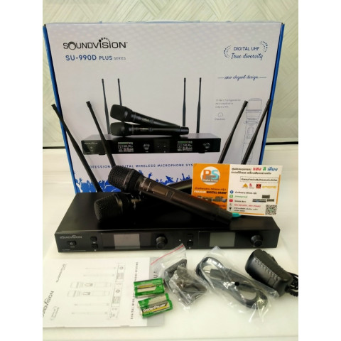 รุ่นใหม่ SOUNDVISION SU-990D/HTP PLUS ไมค์ไร้สายคู่ดิจิตอล UHF แท้💯% ให้เสียงคมชัด เสถียร ลดสัญญาณรบกวน เหมาะทั้งงานเวทีขนาดเล็ก-ใหญ่ คลับ ดนตรี/บันเทิง งานประชุม และการฝึกอบรม มาพร้อมการรับสัญญาณแบบ 4 เสา รองรับการใช้งานได้ไกลสูงสุด 120 เมตร (ในพื้นที่โล่ง) เพิ่มความมั่นใจขณะเคลื่อนไหวบนเวที