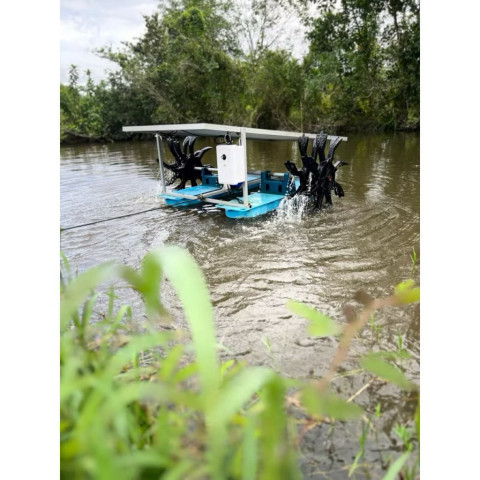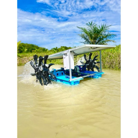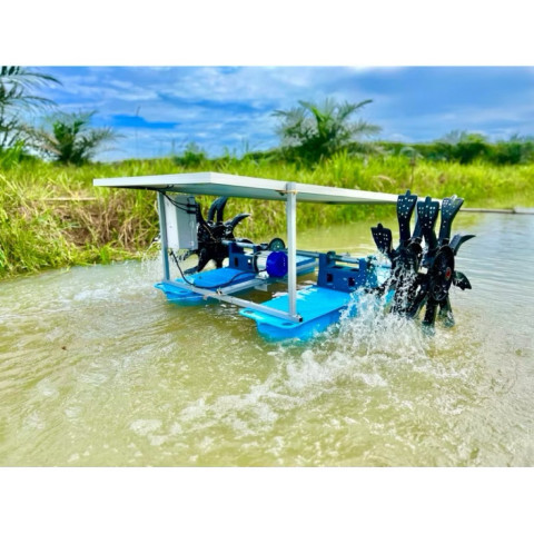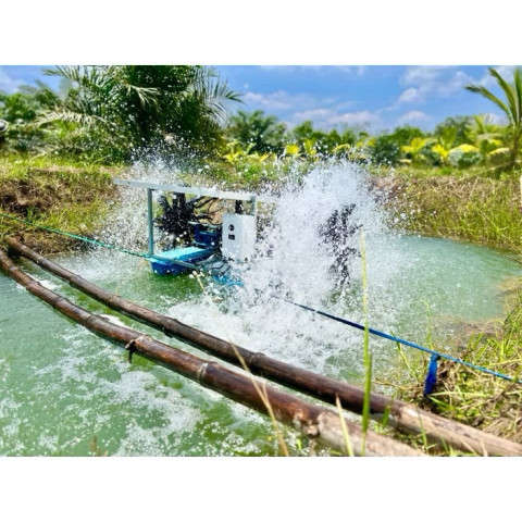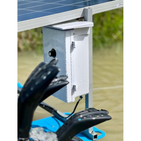 กังหันตีน้ำโซล่าเซลล์ ครบชุดพร้อมใช้งาน รุ่น 24/500W ตัวช่วยบำบัดน้ำและเติมอากาศสำหรับบ่อปลา บ่อกุ้ง บ่อน้ำเกษตร และงานปรับคุณภาพน้ำแบบประหยัดระยะยาว ไม่ต้องใช้ไฟบ้าน ลดกลิ่น ลดน้ำเน่า เพิ่มออกซิเจนในน้ำให้สิ่งมีชีวิตแข็งแรง พร้อมระบบควบคุมอัตโนมัติ ใช้งานง่าย ประกอบง่าย เคลื่อนย้ายสะดวก