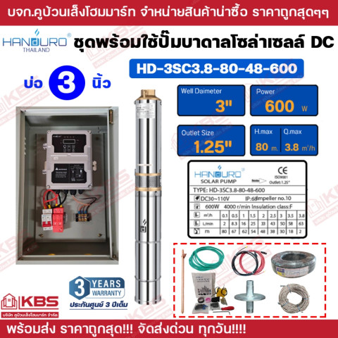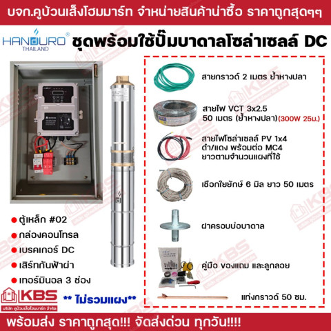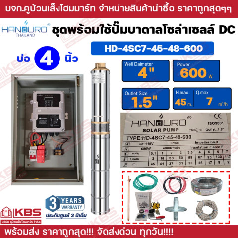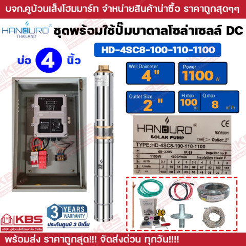 ชุดพร้อมใช้ปั๊มบาดาลโซล่าเซลล์ Handuro DC (บัสเลส) รุ่น 1500W 20Q 48M สำหรับบ่อ 4 นิ้ว ราคา 12,800.00 บาท