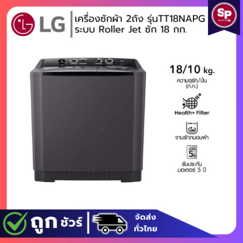 LG เครื่องซักผ้า 2 ถัง รุ่น TT18NAPG ระบบ Roller Jet ขนาด 18 กก. (สินค้าใหม่ รับประกันศูนย์)
