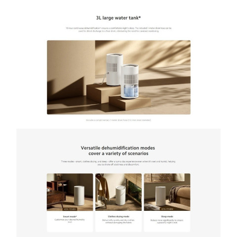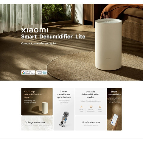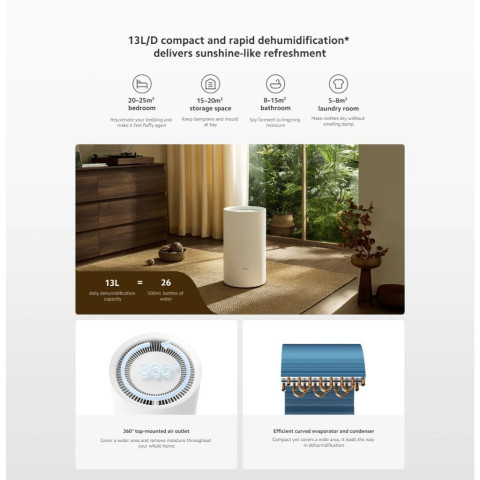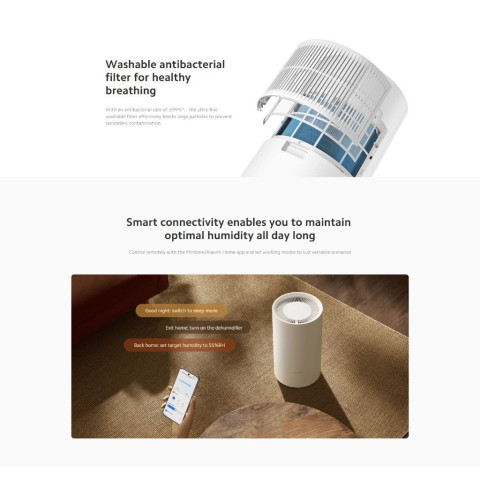 Xiaomi Mijia Smart Dehumidifer เครื่องลดความชื้นอัจฉริยะ 13L ตัวช่วยจัดการความชื้นภายในบ้านให้สบายขึ้น ลดอับชื้น ลดกลิ่นไม่พึงประสงค์ และช่วยปกป้องเฟอร์นิเจอร์/เสื้อผ้าจากความชื้นสะสม มาพร้อมการควบคุมแบบอัจฉริยะผ่าน Wi‑Fi และทำงานเงียบ เหมาะกับการใช้งานในห้องนอน ห้องนั่งเล่น คอนโด หรือพื้นที่ที่ต้องการควบคุมความชื้นอย่างต่อเนื่อง