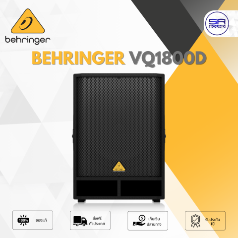 (ใช้โค้ดลดอีก10%) BEHRINGER VQ1800D ลำโพงซับวูฟเฟอร์ขนาด 18 นิ้ว กำลังขับ 500W มาพร้อมแอมป์ในตัว ให้เบสลึก แน่น และพลังเสียงที่ชัดเจน เหมาะสำหรับงานแสดงสด ร้านอาหาร ผับบาร์ ห้องซ้อม ไปจนถึงงานอีเวนต์ที่ต้องการย่านความถี่ต่ำแบบจัดเต็มในตู้เดียว ใช้งานสะดวก ลดภาระการพกพาเพาเวอร์แอมป์แยก พร้อมความอุ่นใจด้วยประกันศูนย์ไทย 1 ปี (ราคาต่อ 1 ใบ)