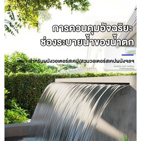 ม่านน้ำตก รางทำม่านน้ำตกสไตล์โมเดิร์น สแตนเลสเกรด 304 ยกระดับบรรยากาศสระว่ายน้ำ บ่อปลา หรือสวนของคุณให้ดูหรูทันสมัย ด้วยสายน้ำแบบ “ม่านน้ำตก” ที่ไหลต่อเนื่องสวยงาม ผลิตจากสแตนเลสเกรด 304 ผิว 2B แข็งแรง ทนทาน เหมาะทั้งงานตกแต่งและงานใช้งานจริง พร้อมติดตั้งได้สะดวกด้วยชุดลิ้นม่านน้ำตกสำเร็จรูป