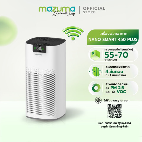 เลือก Mazuma Nano Smart 450 Plus เพื่ออากาศที่สะอาดขึ้นทุกวัน พร้อมการควบคุมที่ทันสมัยและการดูแลหลังการขายที่อุ่นใจ