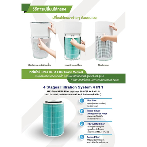 Nano-Silver Antibacterial Filter ช่วยลดแบคทีเรียที่เป็นอันตรายในอากาศ
