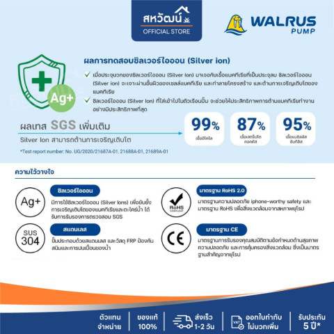 เสริมความสะอาดยิ่งขึ้น ด้วยระบบ Silver Ion (Ag+) ช่วยยับยั้งเชื้อแบคทีเรีย