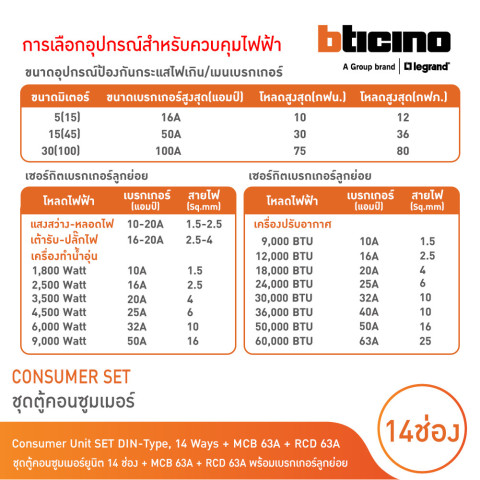 หมายเหตุ: สามารถแจ้งเปลี่ยนขนาดแอมป์ของเบรกเกอร์ลูกย่อยได้ (เลือกในกลุ่ม 16A | 20A | 32A) โดยรวมทั้งชุดต้องครบ 12 ตัว